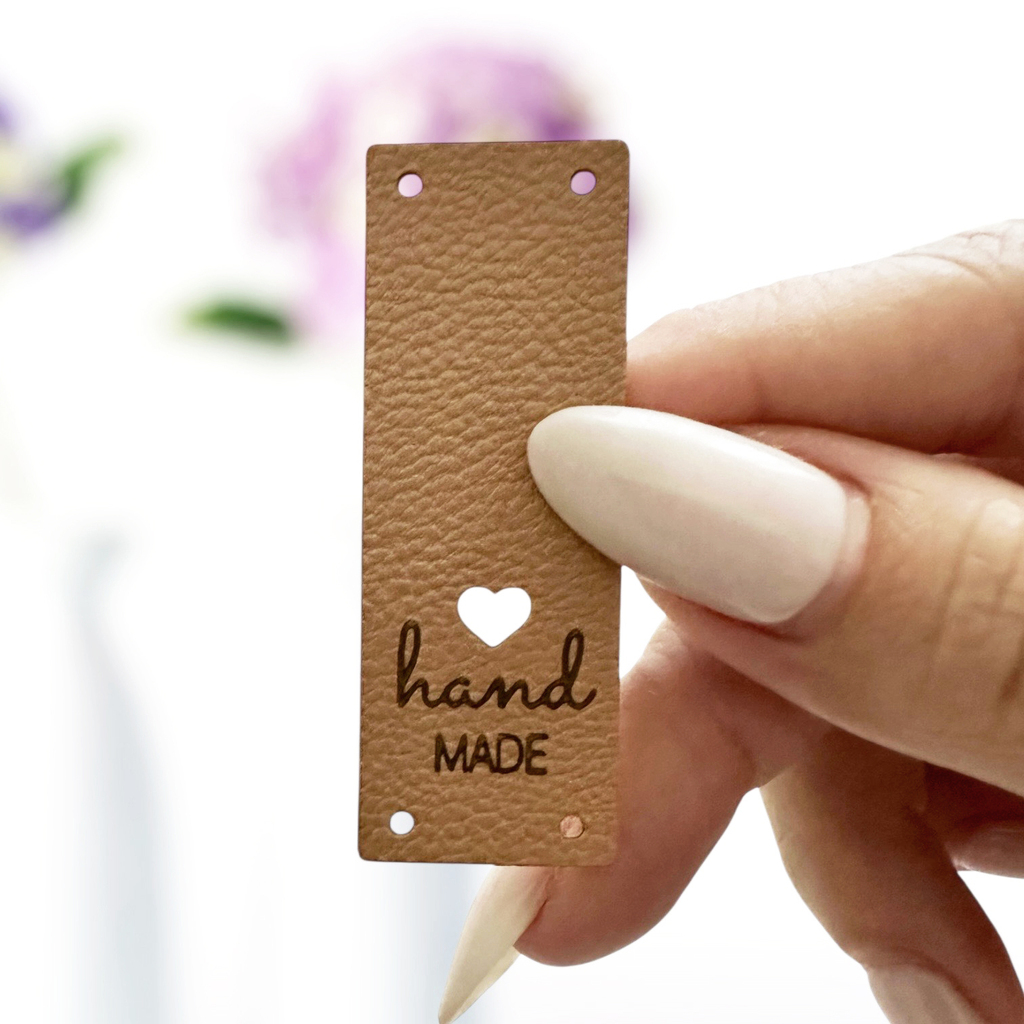Essa etiqueta bandeirinha é feita pra destacar o carinho por trás de cada criação. O coração vazado acima do handmade é a tradução do cuidado que só o feito à mão carrega. Perfeita para ser aplicada na borda de peças artesanais, presentes e produtos criativos.